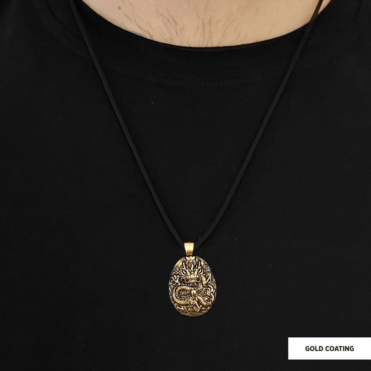 925 Sterling Silver Dragon Pendant Gold Coating-Cord