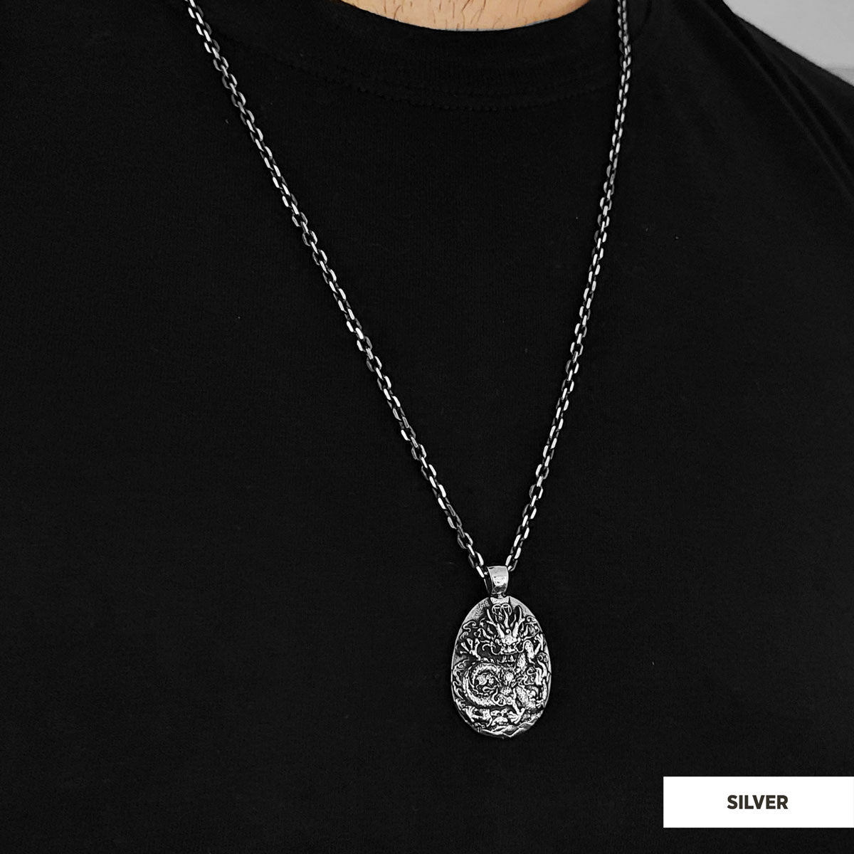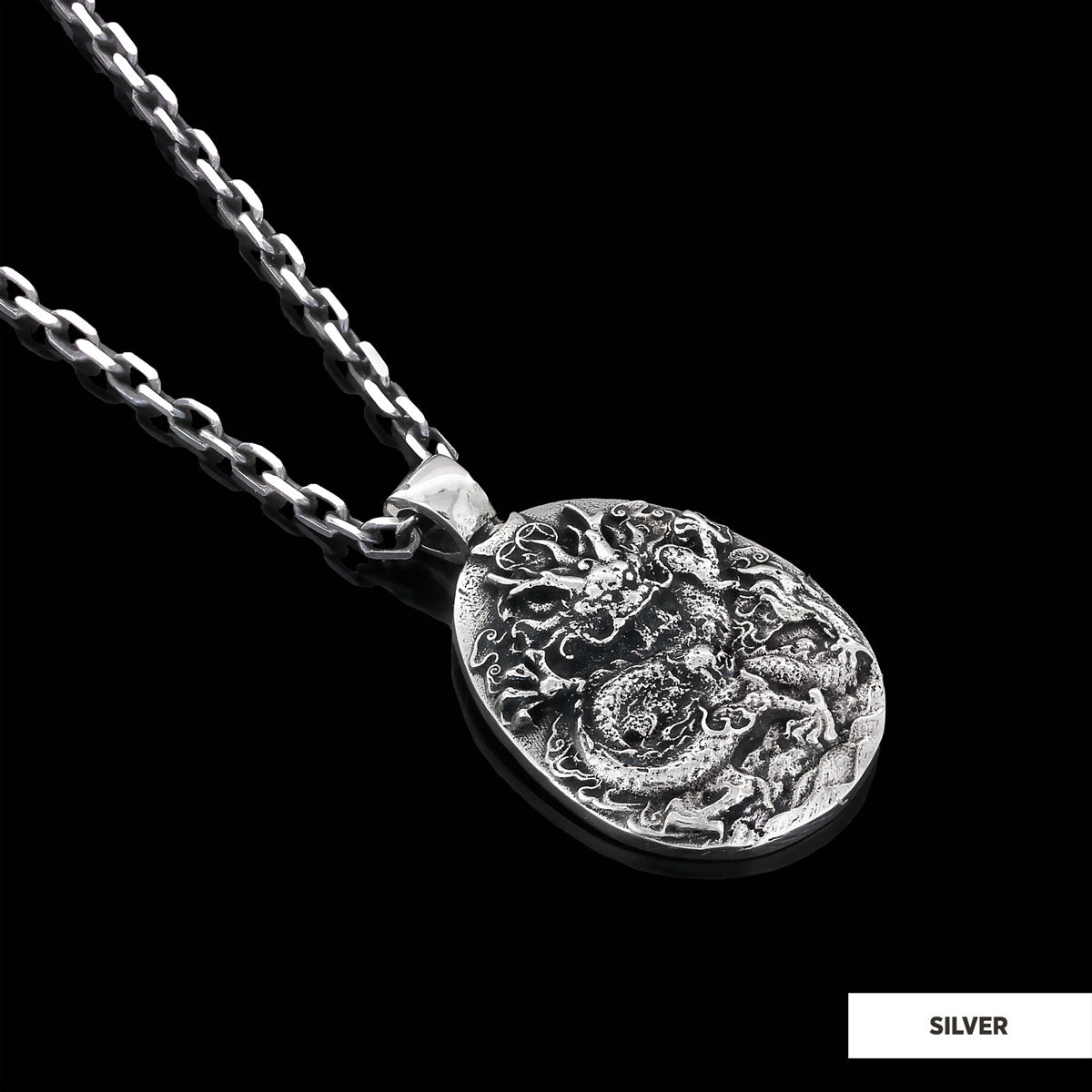 925 Sterling Silver Dragon Pendant Silver-Chain
