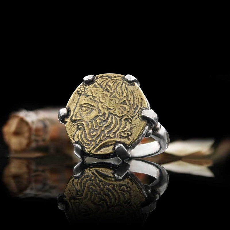 925 Sterling Silver Tetradrachme Tasos Coin Women Ring