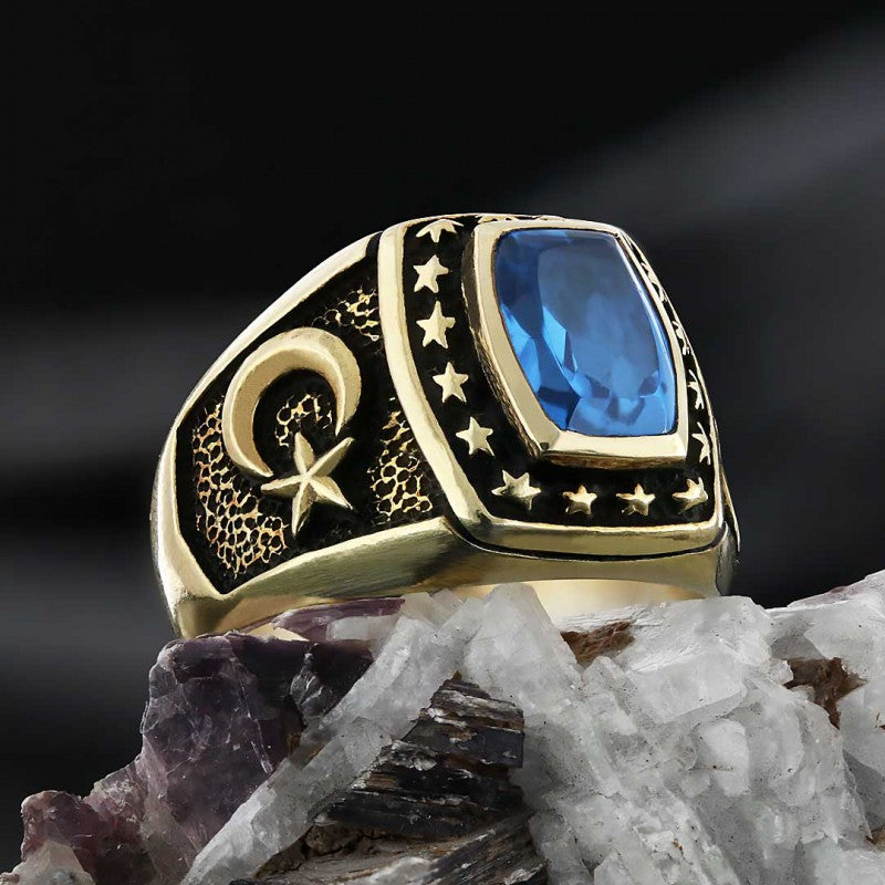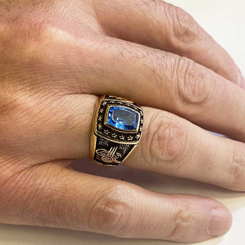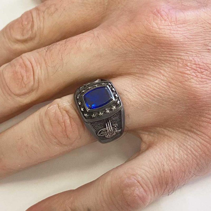 925 Sterling Silver Tughra Ring with Stars