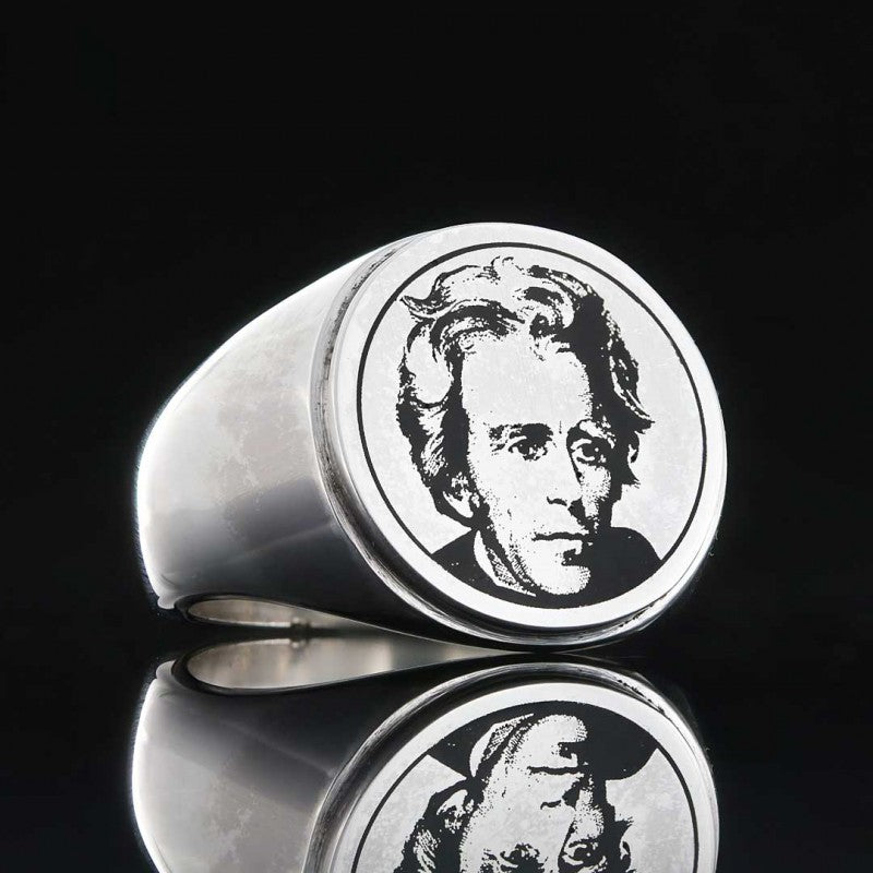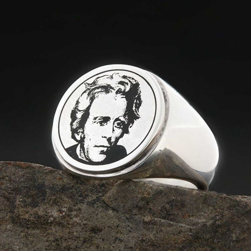 Andrew Jackson Photo Round Silver Ring