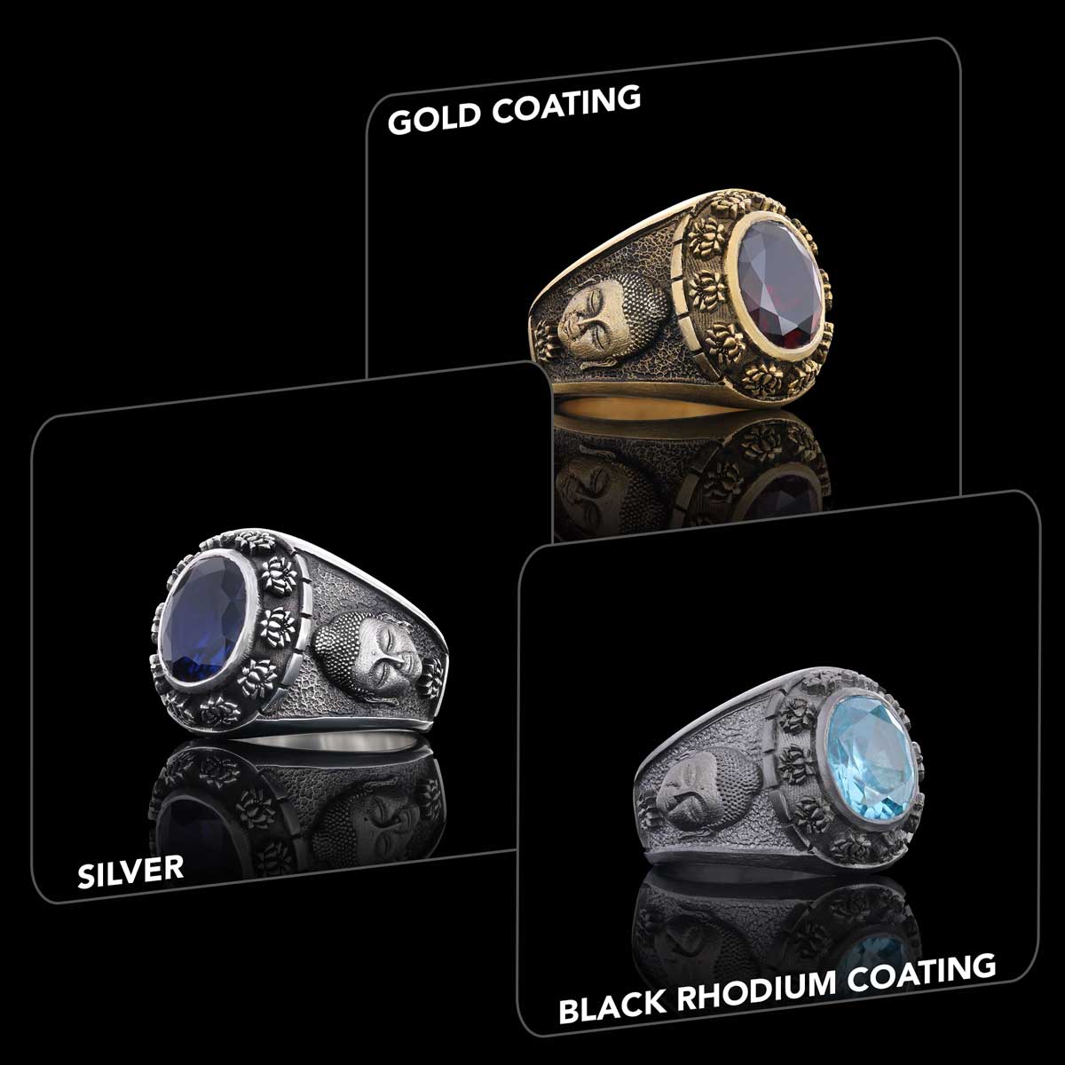 Buddhist Silver Ring with Stone, Buddha Ring, Lotus Flower Ring, Buddhist Jewelry, Religious Gifts