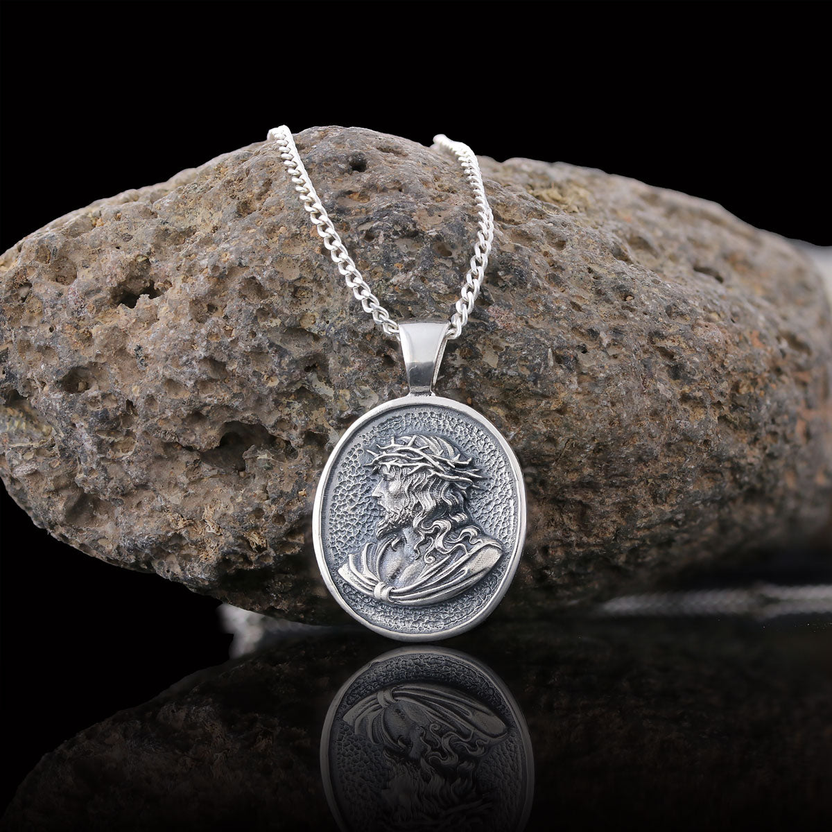 Christ Necklace, Jesus Pendant, Silver Religious Accessory, Gold Plated Jesus Jewelry, Handmade Christian Necklace, Religious Pendant Gift
