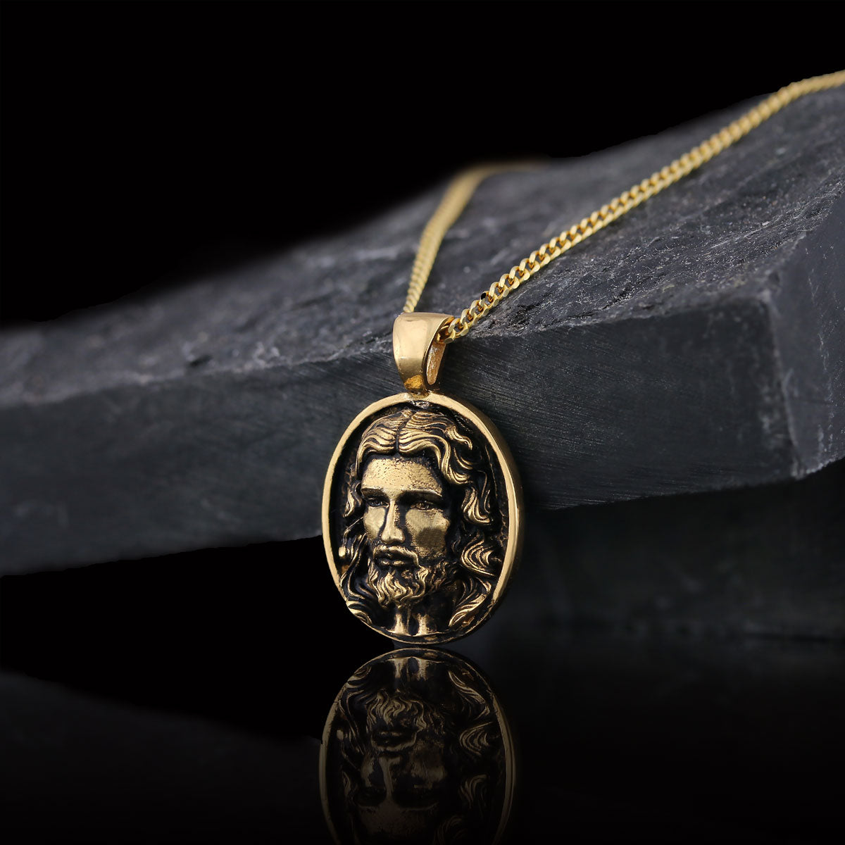 Christ Pendant, Christian Necklace, Jesus Necklace, Religious Gift for Men, Round Silver Religious Necklace, Gold Plated Jesus Jewelry