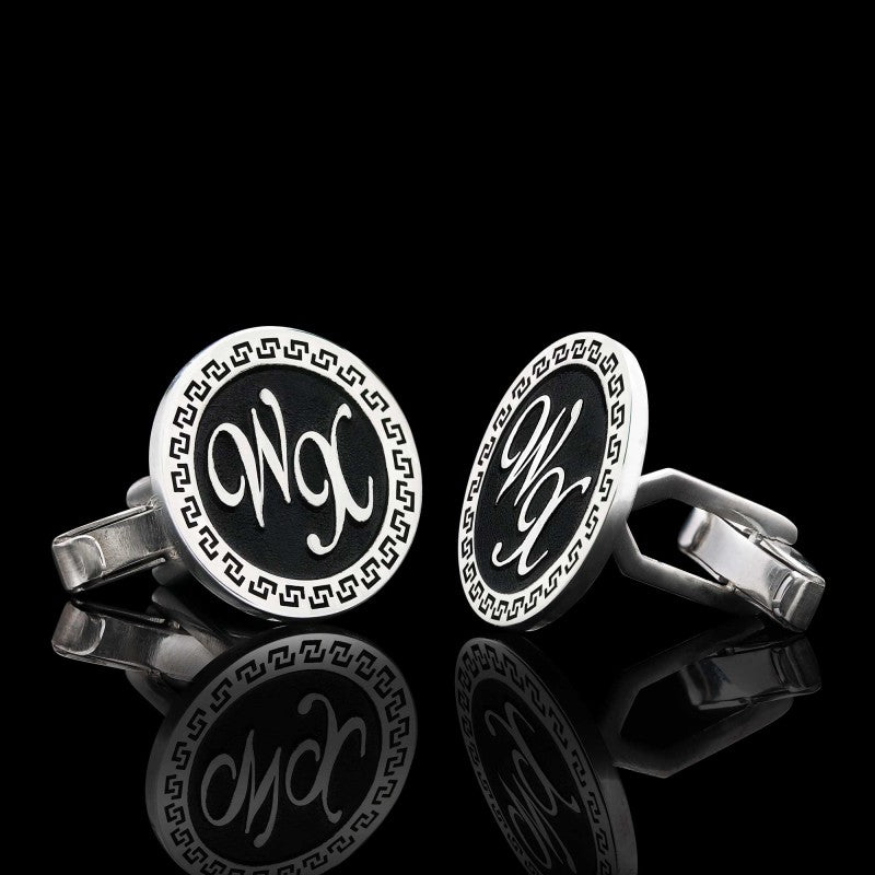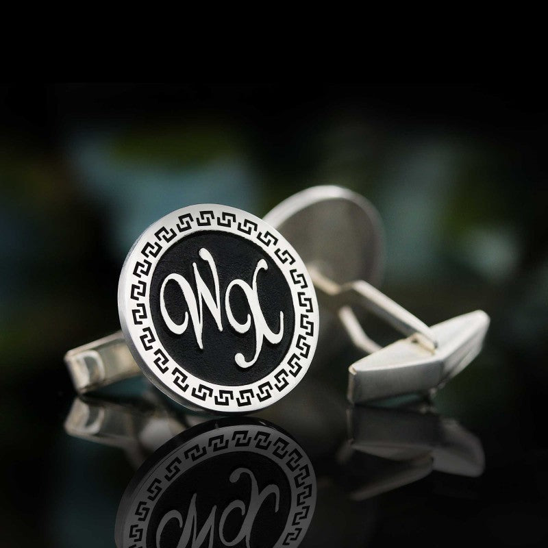 Custom Design Handmade Silver With Motifs Round Cufflinks