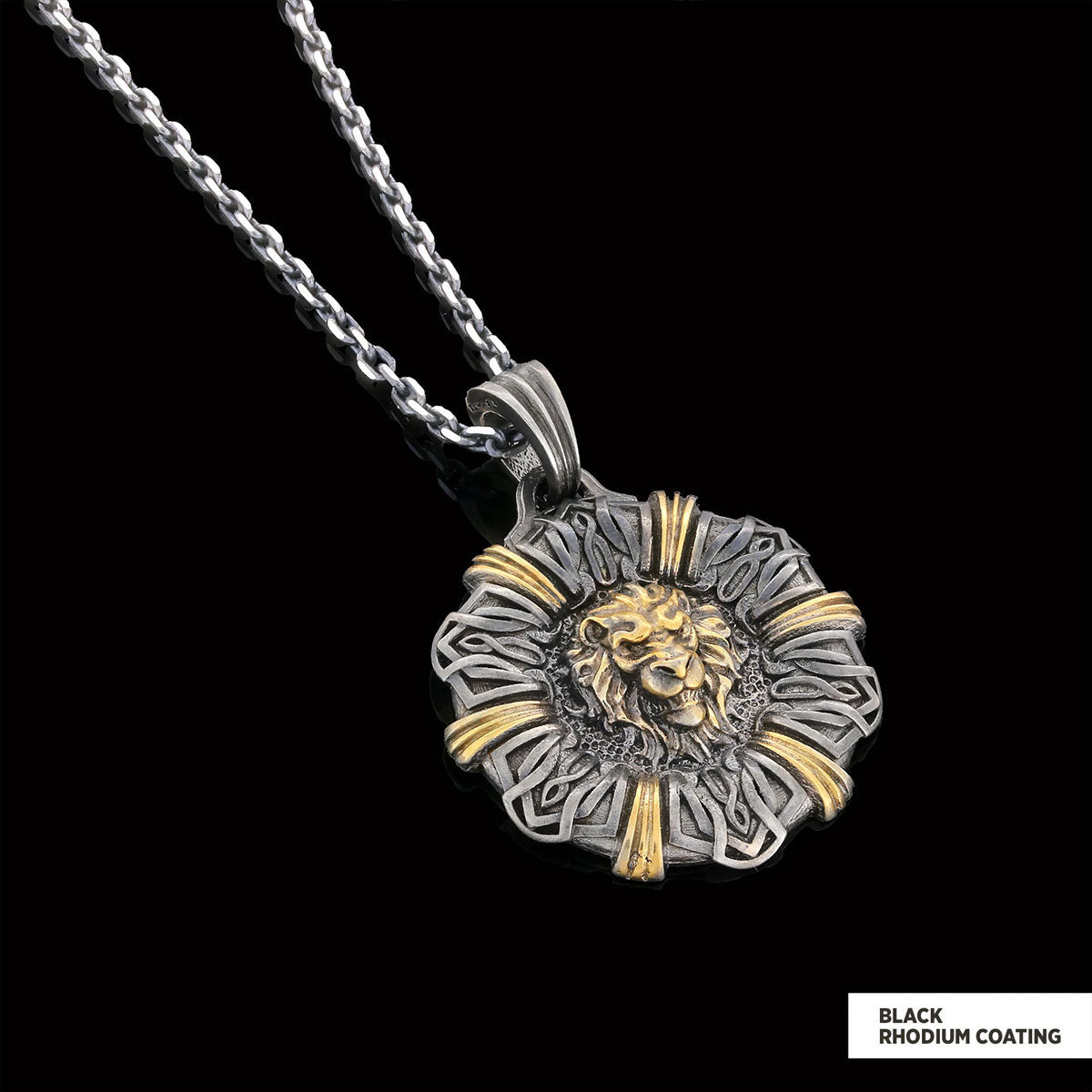 Custom Design Silver Leo Pendant Black Rhodium Coating-Chain