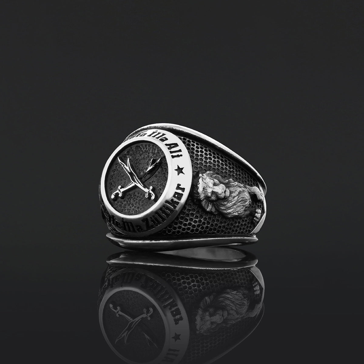 Dhulfiqar Sword Round Ring, Islamic Zulfiqar Sword Jewelry, Zulfiqar Face Ring, Hz Ali Ring Gift, Zulfiqar Jewelry, Muslim Silver Jewelry Silver