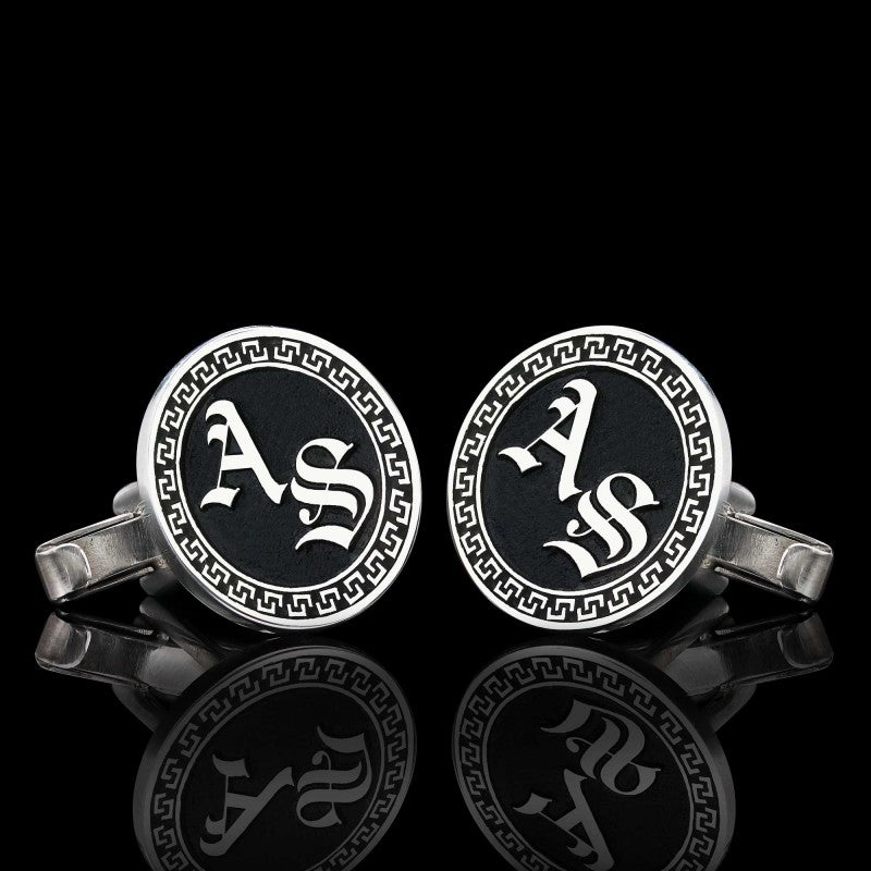 Handmade Special Design Silver Edged With Motifs Round Cufflinks