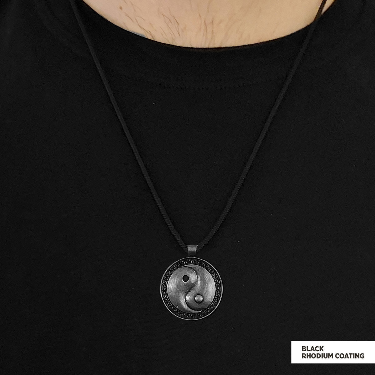 Handmade Sterling Silver Round Yin Yang Pendant Black Rhodium Coating-Cord