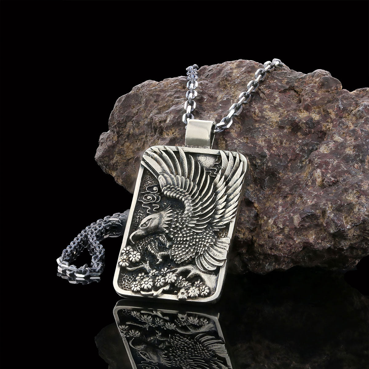 Men Sterling Silver Eagle Pendant Silver-Chain