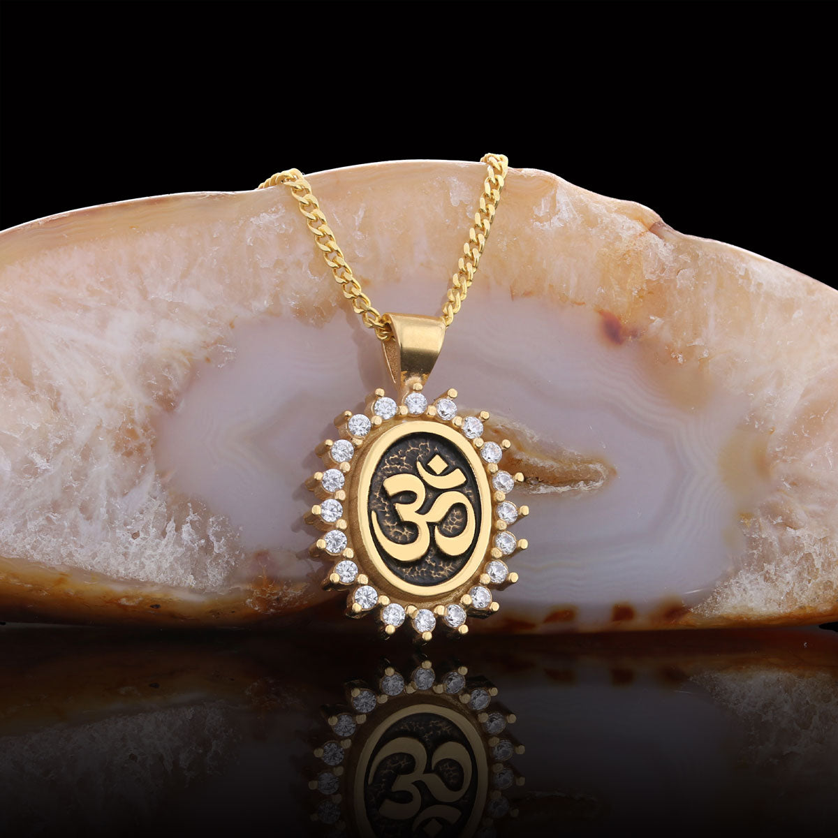 Om Necklace, Aum Necklace, Spiritual Jewelry, Om Necklace, Yoga-inspired Om Charm, Elegant Om Necklace, Stoned Aum Pendant