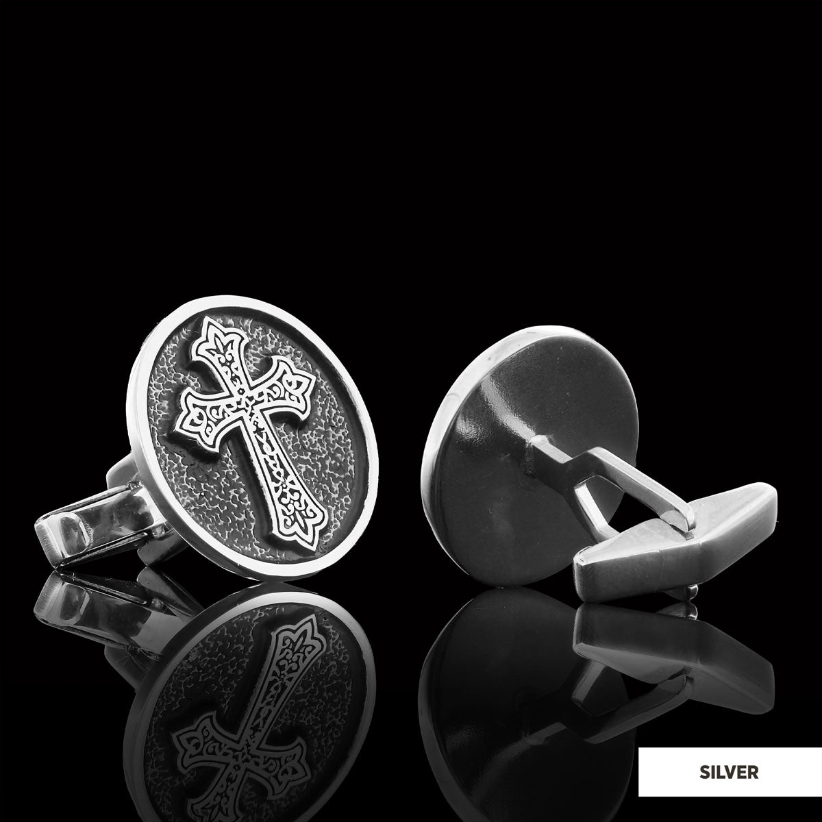 Oval Christian Cross Cufflinks, Special Design Cross Cufflinks, Cross Silver Oval Cufflinks Silver