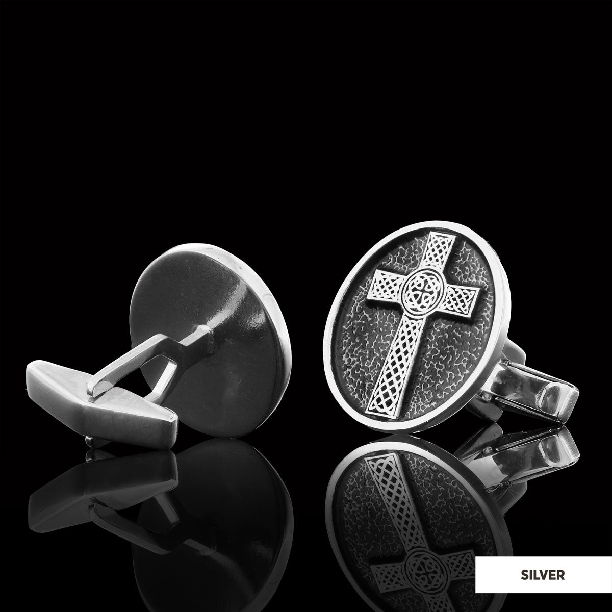 Oval Gold Plated 925 Sterling Silver Crusader Cufflinks, Silver Christian Cross Cufflinks, Silver Christian Cross Cufflinks