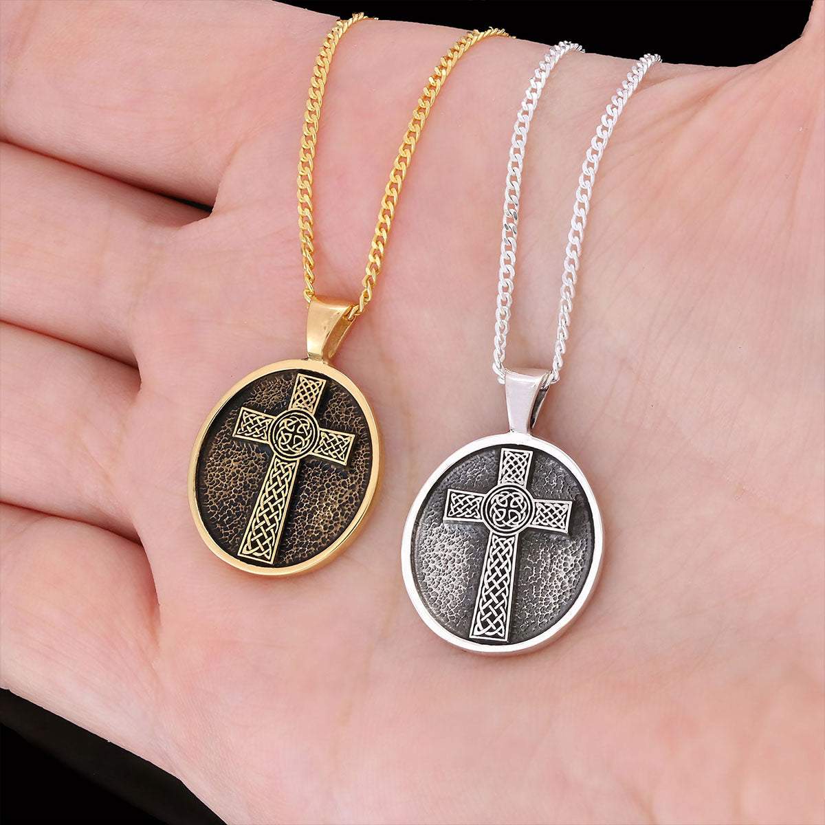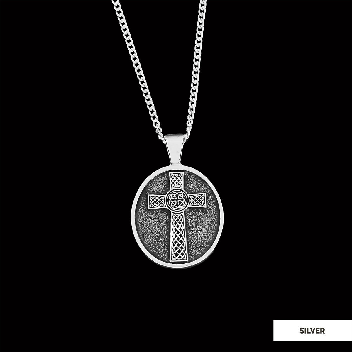 Oval Gold Plated 925 Sterling Silver Crusader Pendants, Silver Christian Cross Necklace, Silver Christian Cross Pendants