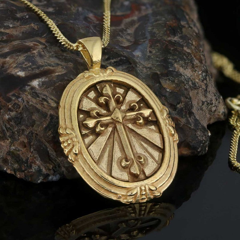 Oval Sterling Silver Christian Cross Pendant