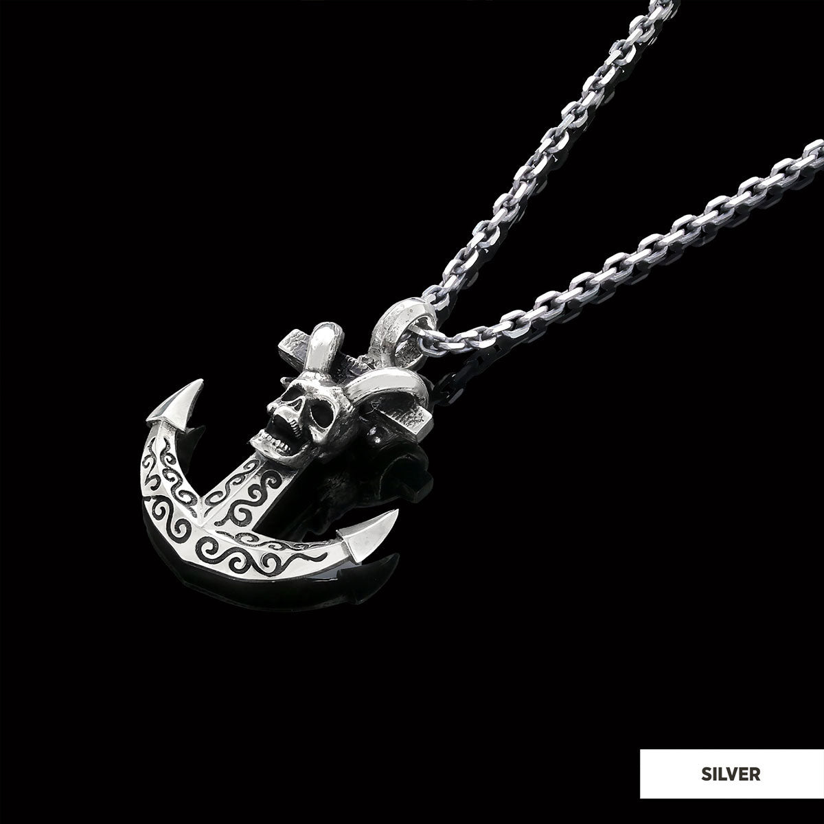 Personalized Skull Shaped Engraved Anchor Necklace
