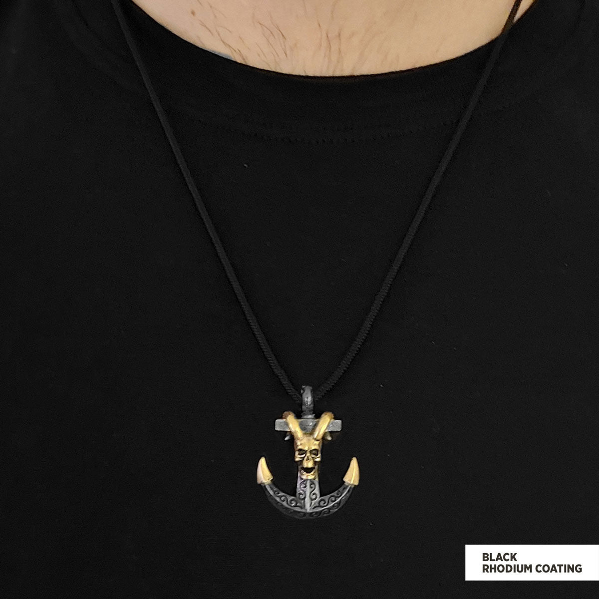 Personalized Skull Shaped Engraved Anchor Necklace Black Rhodium Coating-Cord