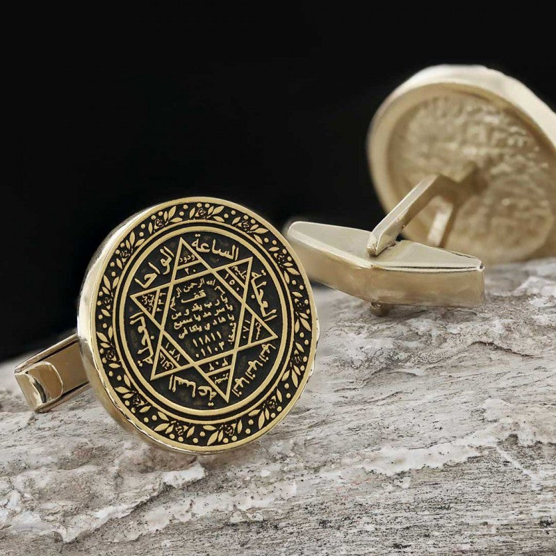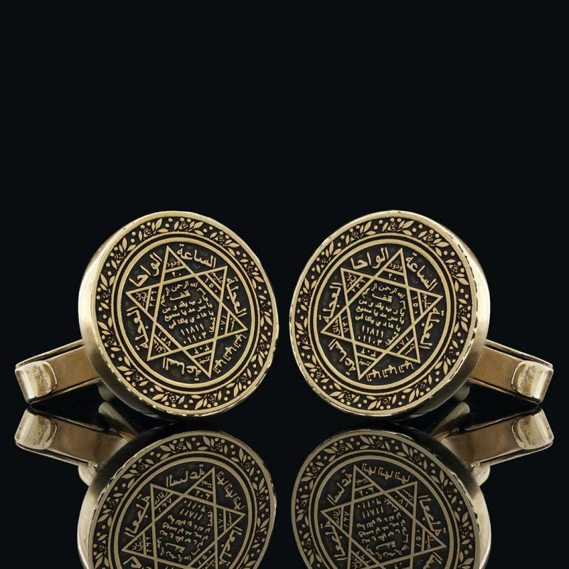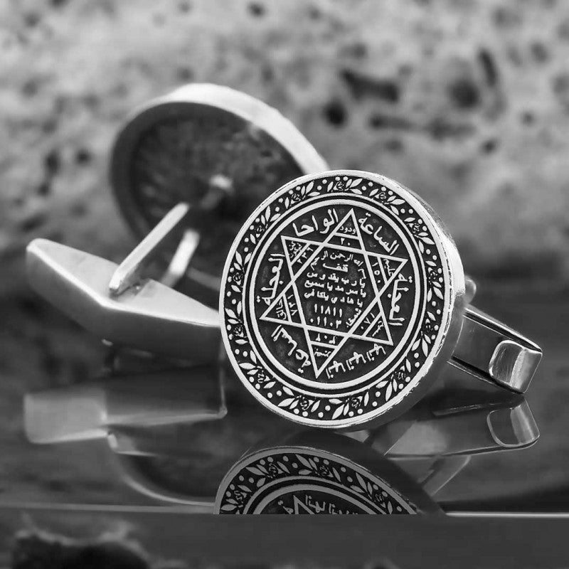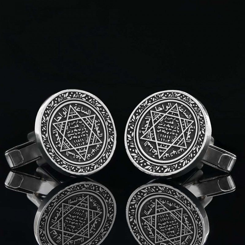 Seal Of Solomon Round Engraved Cufflink