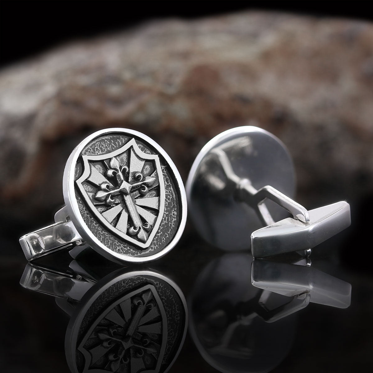 Silver Shield Cufflinks, Religious Gift for Men, Christian Armor Jewelry, Knight’s Cross and Shield Cufflinks