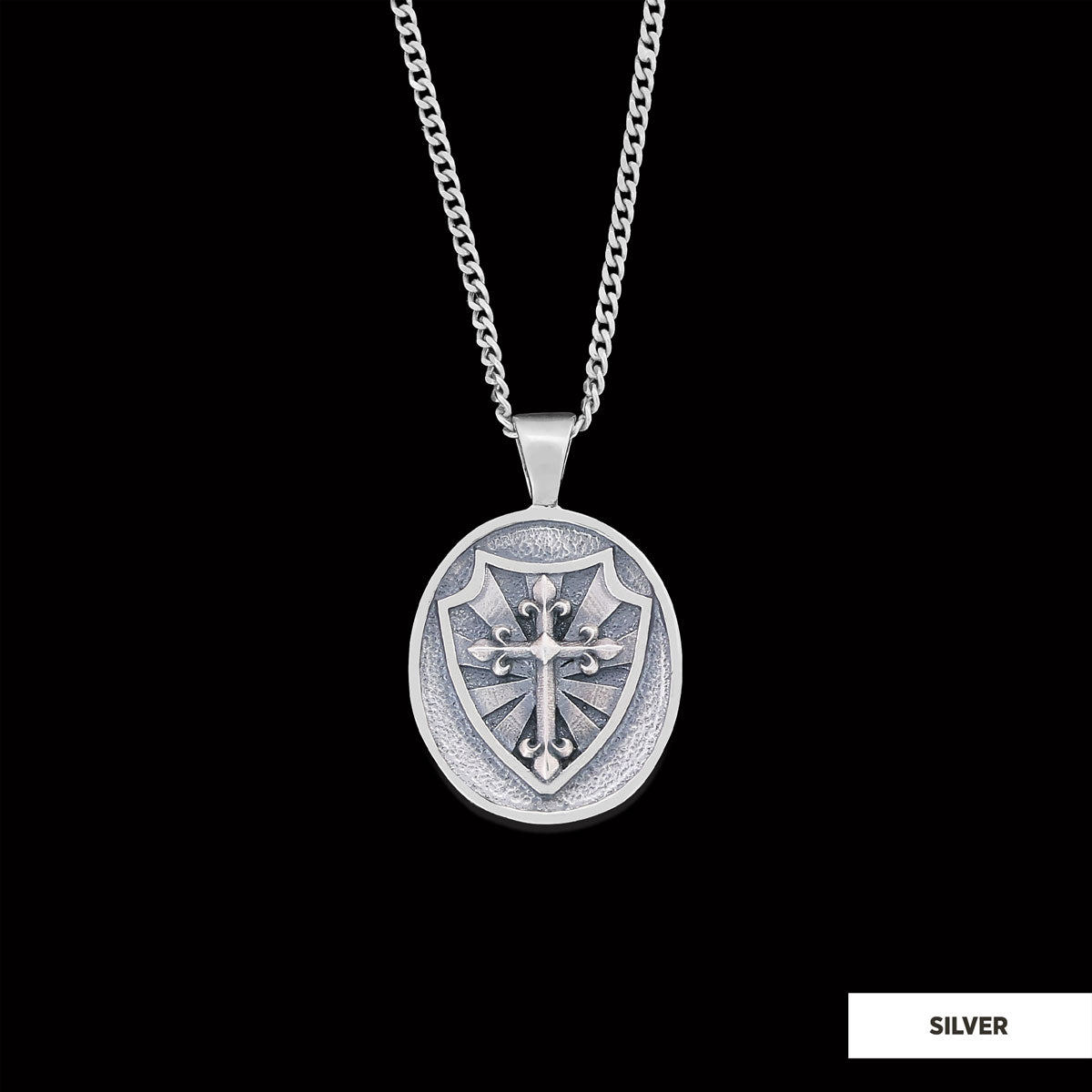 Silver Shield Pendant, Religious Gift for Men, Christian Armor Jewelry, Knight’s Cross and Shield Necklace Silver