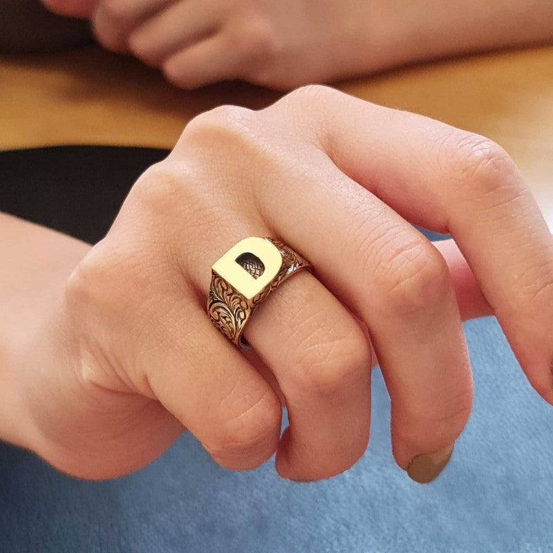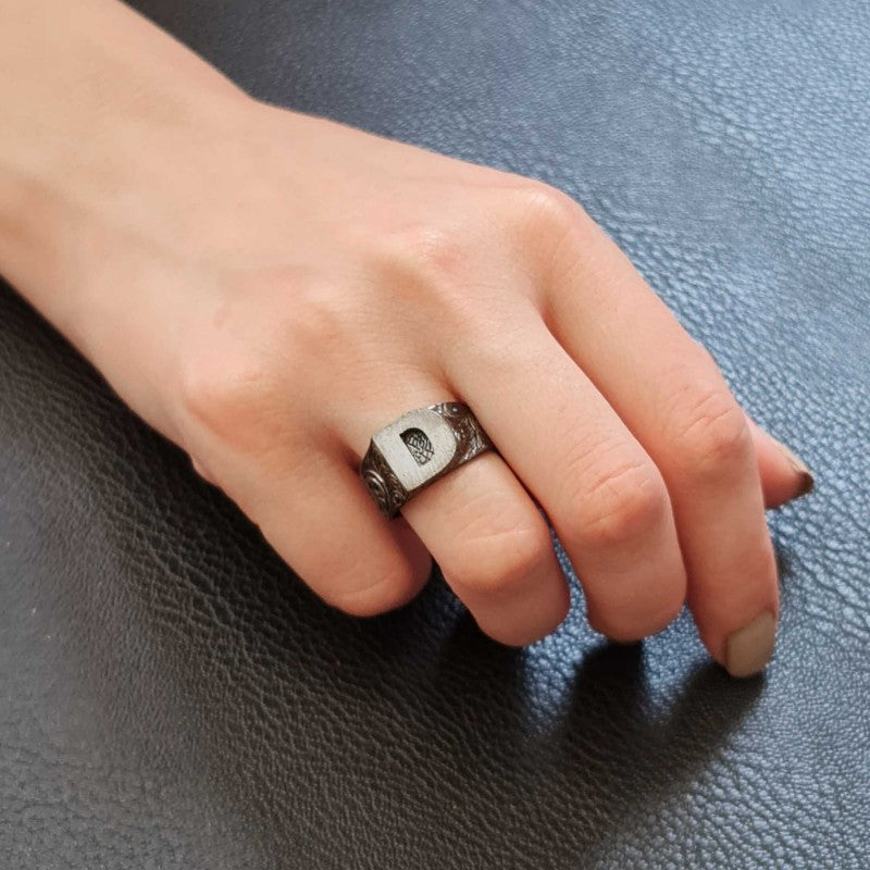 Sterling Silver Monogram D Bold Alphabet Women Ring
