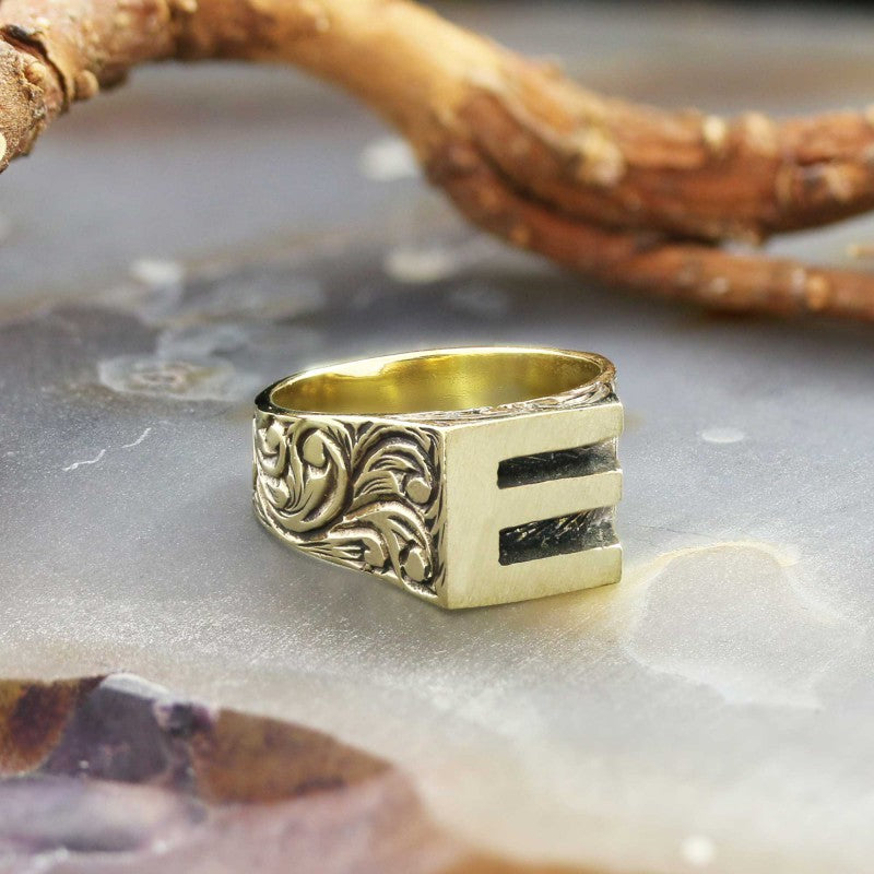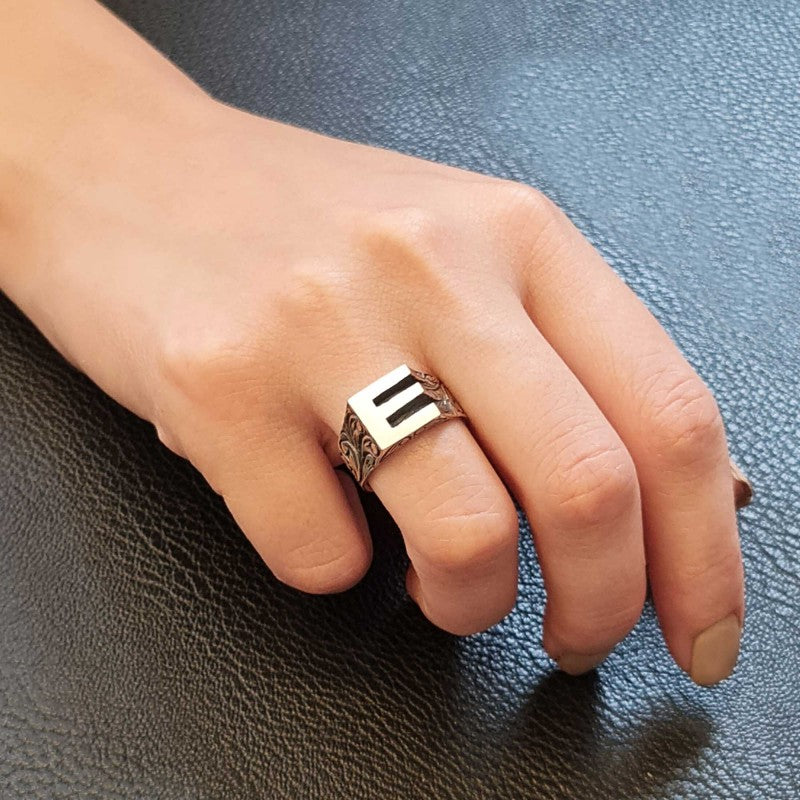 Sterling Silver Monogram E Bold Alphabet Women Ring