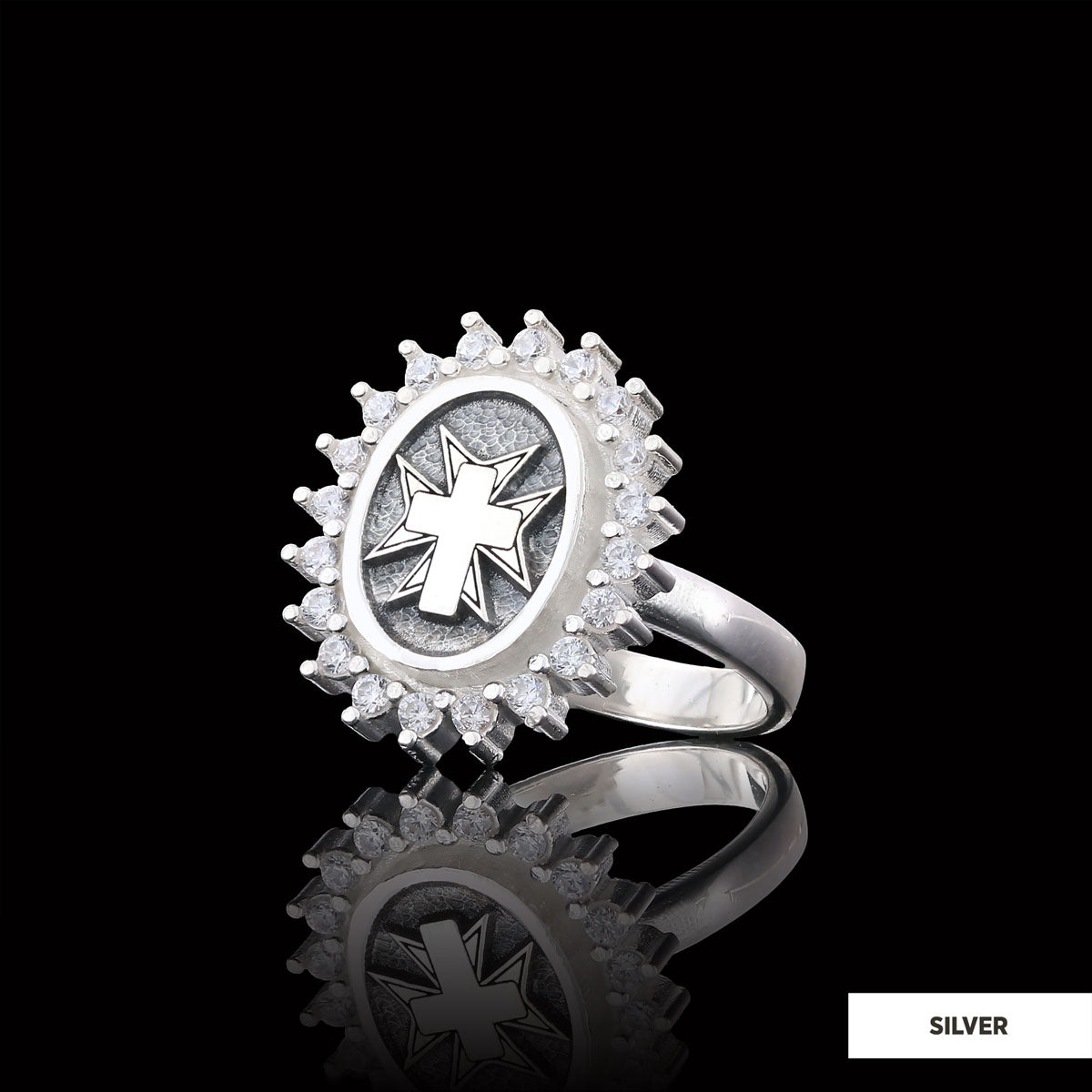 Stone Cross Silver Ring, Gold Plated Silver Christian Cross Stone Ring, Silver Oval Cross Ring, Christian Gift Silver