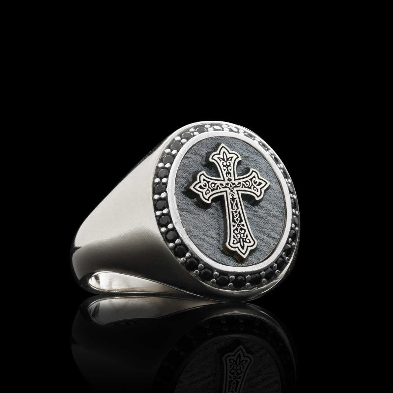 Unique Design Oval Sterling Silver Christian Cross Women Ring