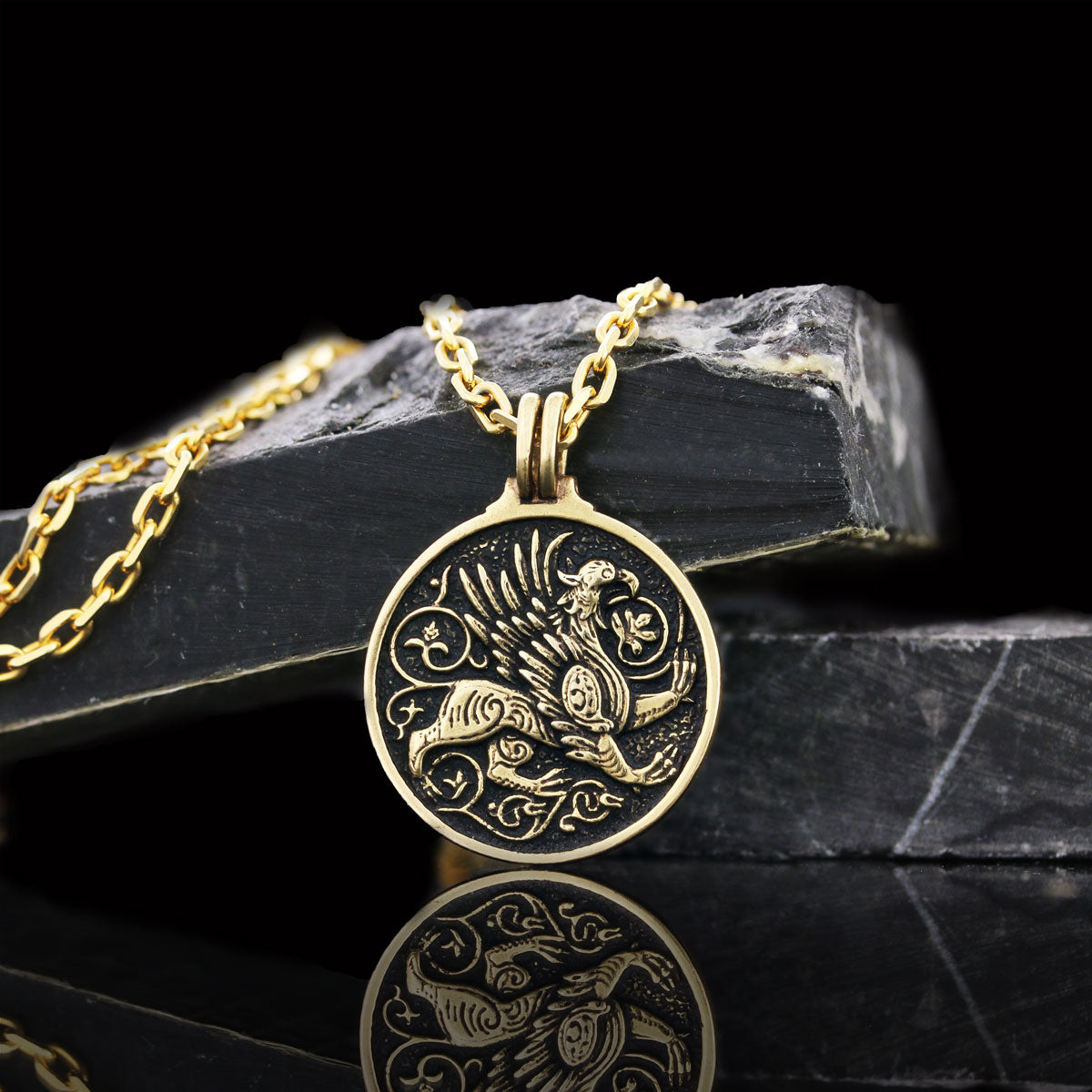 Unique Design Round Gryphon Pendant Gold Coating-Chain