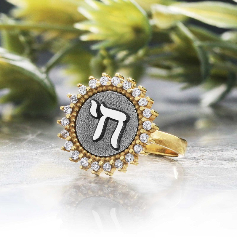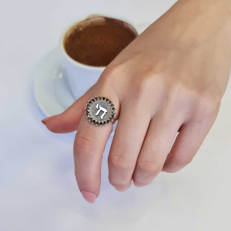 Unique Design Round Stone Chai Jewish Sterling Silver Women Ring