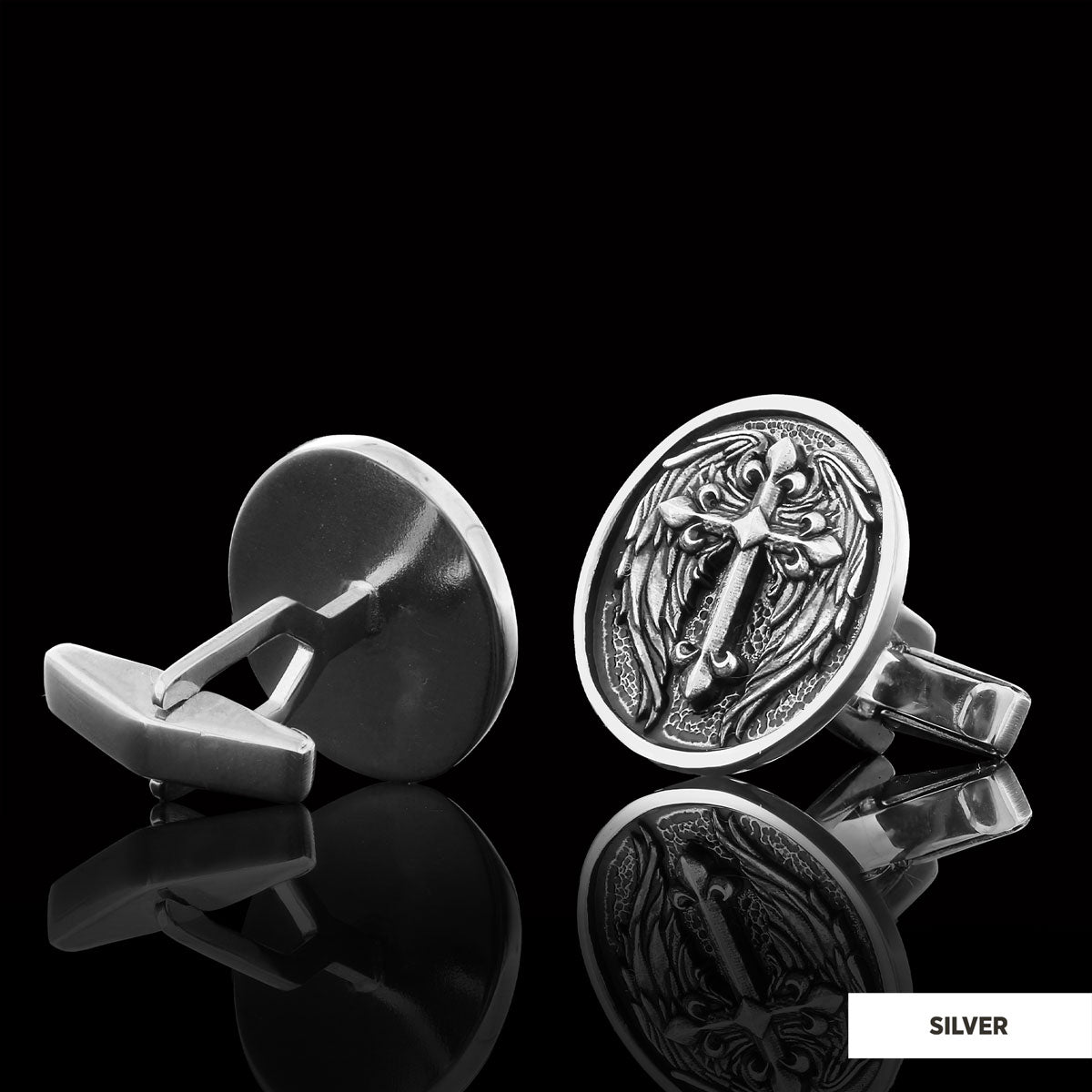 Winged Cross Cufflinks, Christian Jewelry, Gold Plated Cross Cufflinks, Religious Accessory, Crucifix Gift Cufflinks Silver