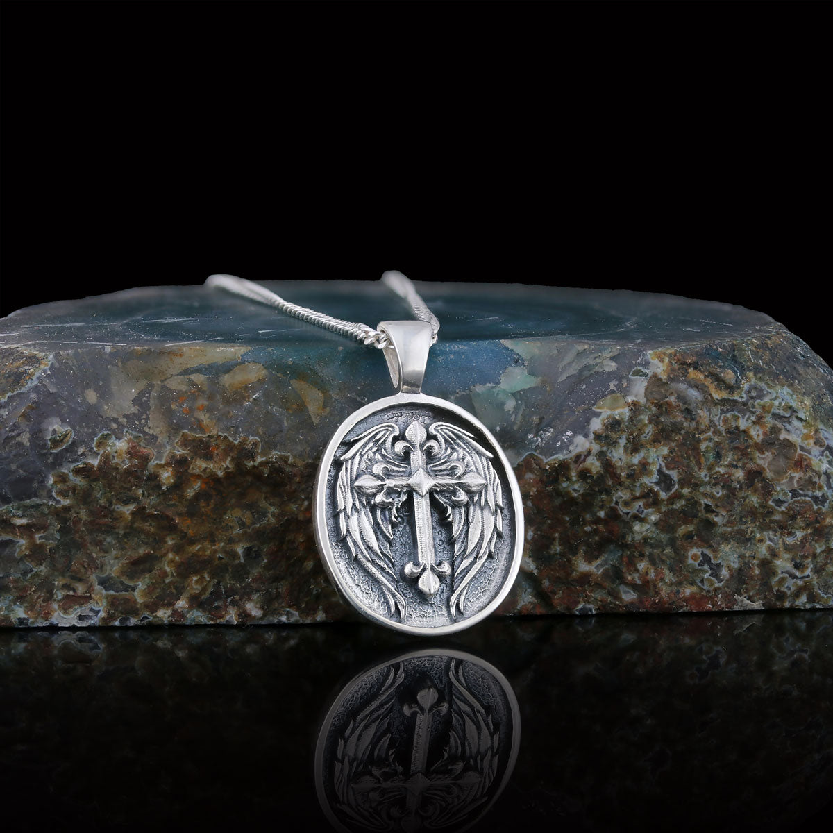 Winged Cross Necklace, Christian Jewelry, Gold Plated Cross Pendant, Religious Accessory, Crucifix Gift Necklace