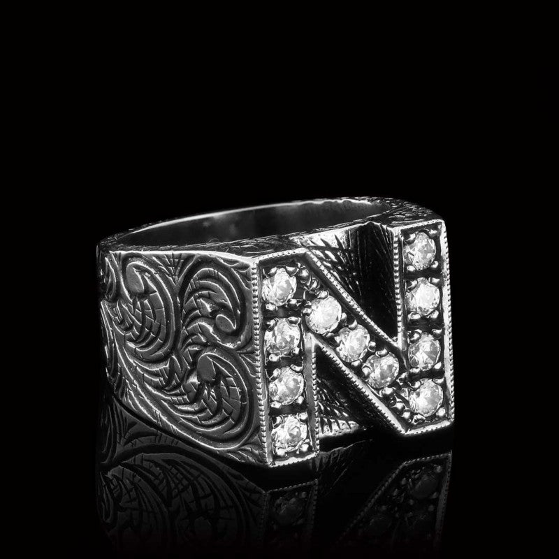 925 Sterling Silver Celtic Letter N Bold Alphabet Ring