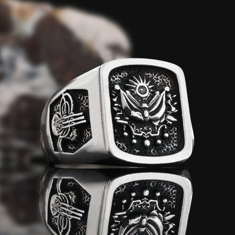 925 Sterling Silver Ottoman State Coat of Arms Ring