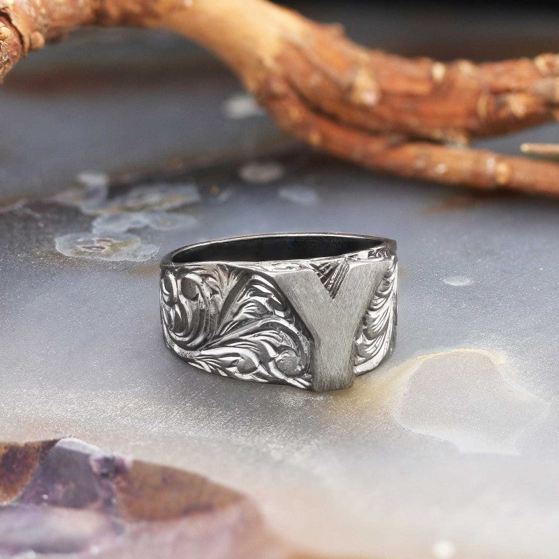 Bold Letter Y Monogram 925 Sterling Silver Women Ring