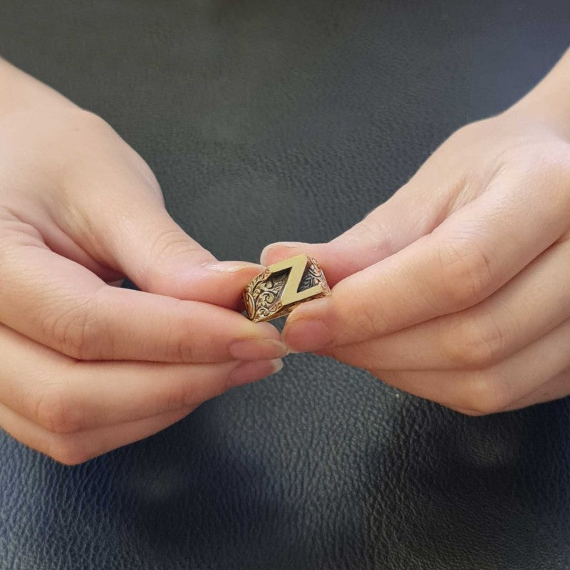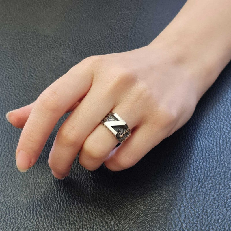Bold Letter Z Monogram 925 Sterling Silver Women Ring