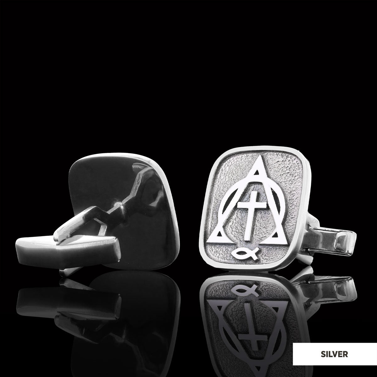 Christian Cross Ichthus Cufflinks, Alpha Omega Cross Cufflinks, Square Christianity Ichthus Cufflinks