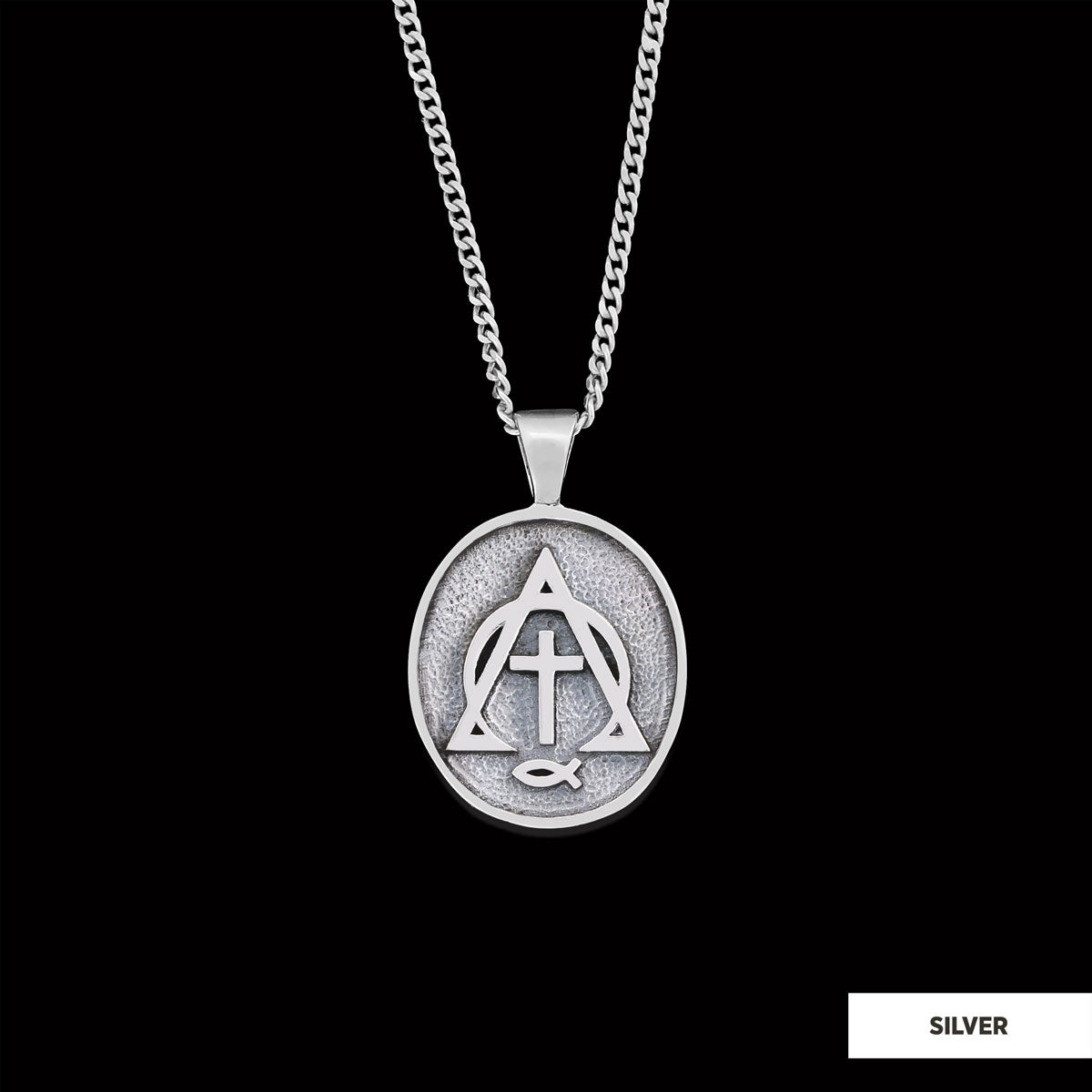 Christian Cross Ichthus Necklace, Square Christian Jewelry, Ichthus Pendant, Alpha Omega Cross Necklace