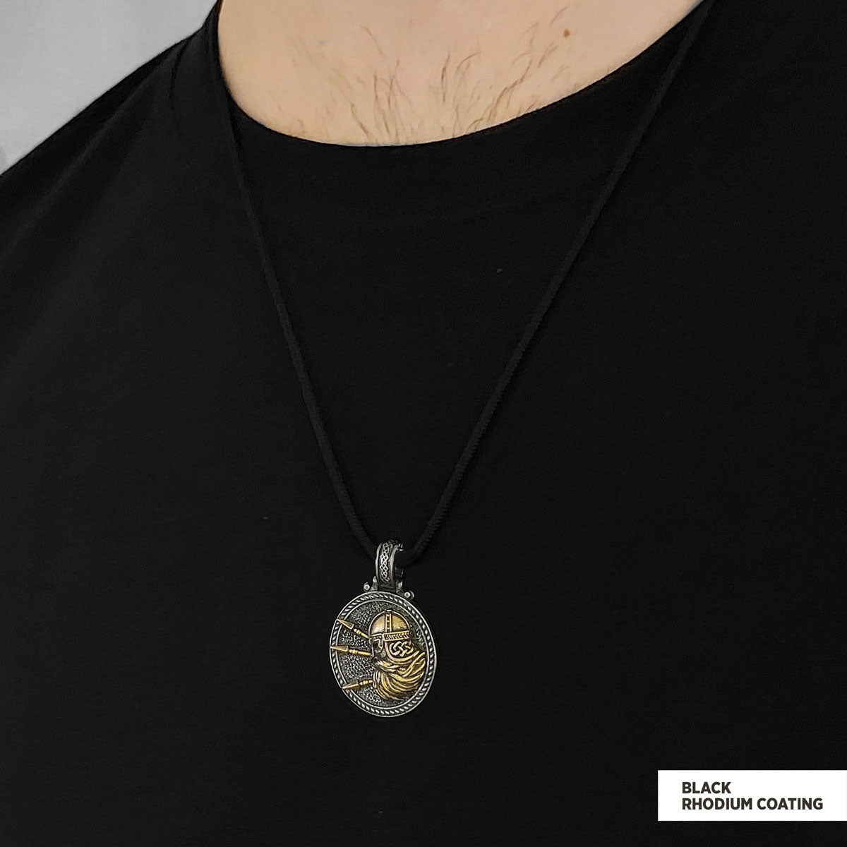 Custom Design Round Shaped Three Spear Viking Necklace Black Rhodium Coating-Cord