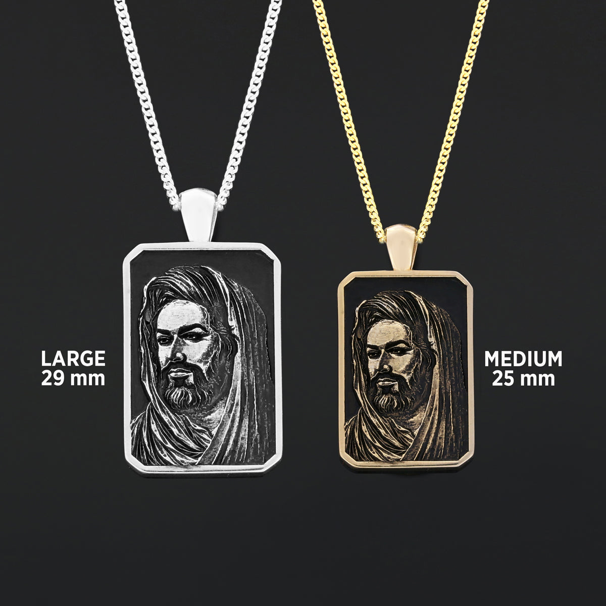 Hazrat Ali Face Necklace, Islamic Rectangular Pendant, Dhulfiqar Jewelry, Zulfiqar Face Necklace, Zulfiqar Jewelry, Muslim Silver Necklace