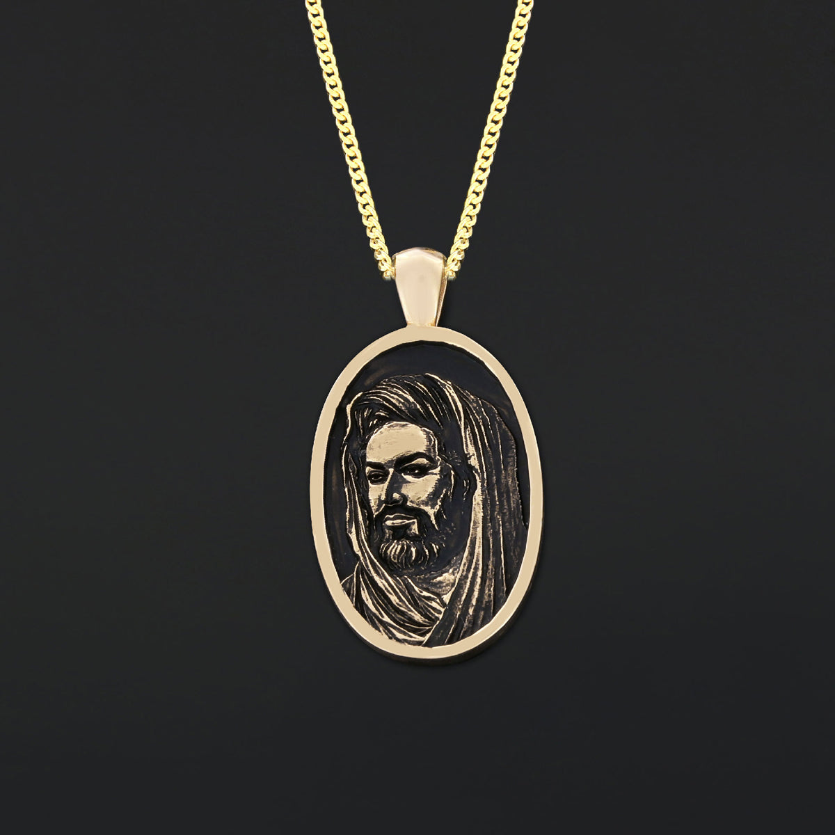 Islamic Oval Pendant, Dhulfiqar Jewelry, Zulfiqar Face Necklace, Zulfiqar Jewelry, Muslim Silver Hazrat Ali Face Necklace