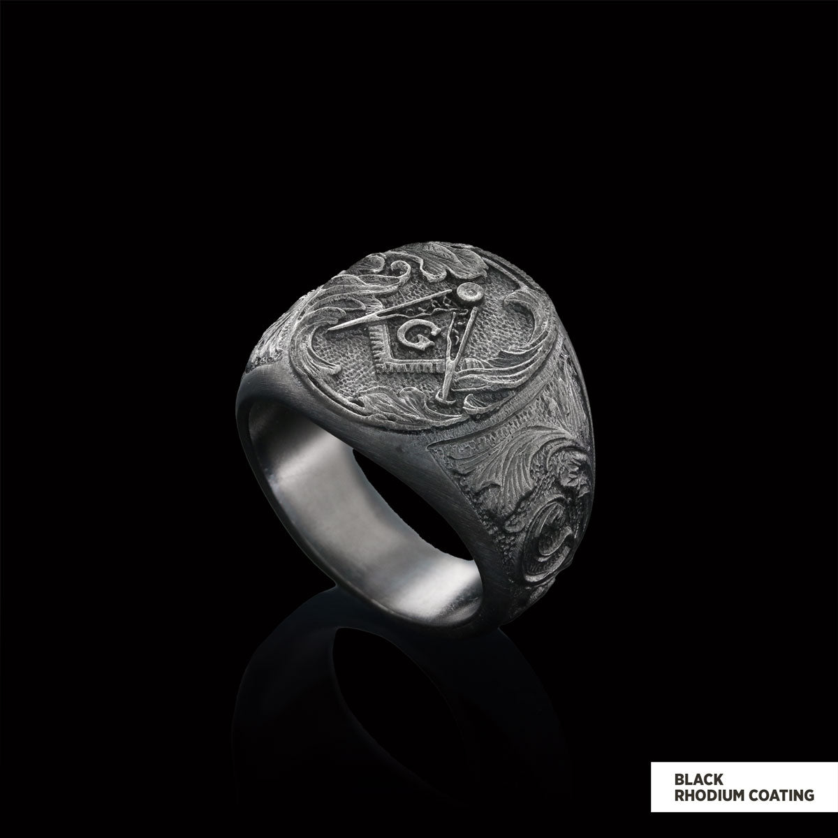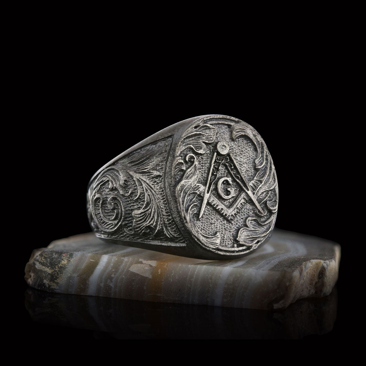 Masonic Compass Round Ring, Men Signet Mason Ring, Freemason Symbol Signet Ring