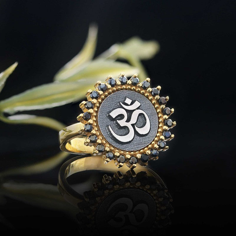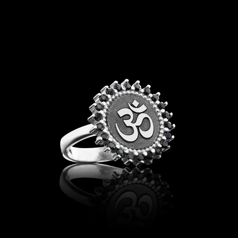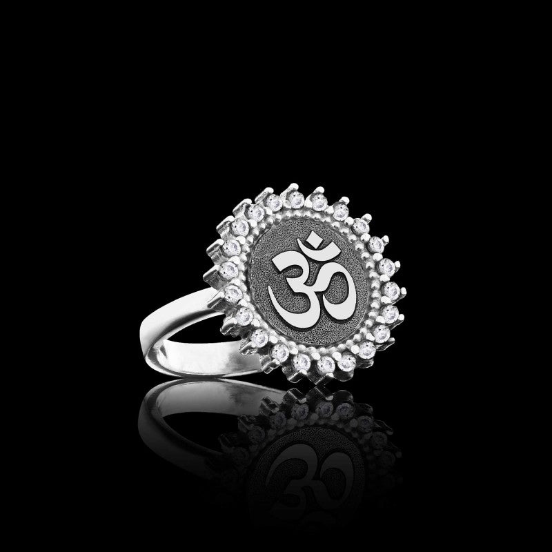 Round Stone Handmade Special Design Sterling Silver Om Buddha Women Ring