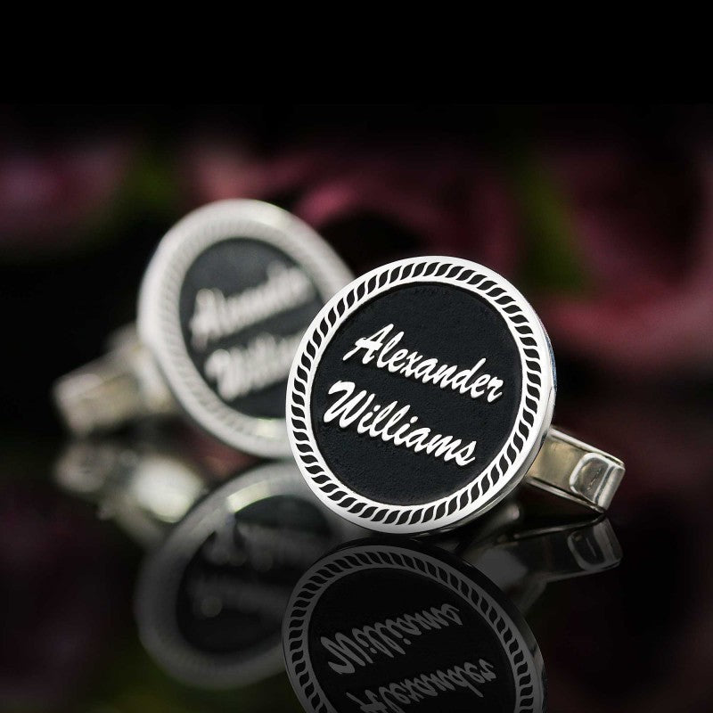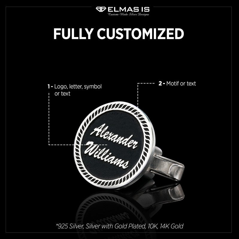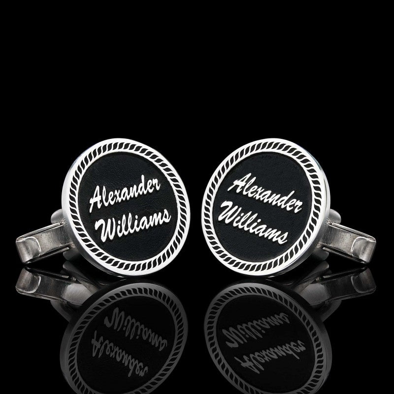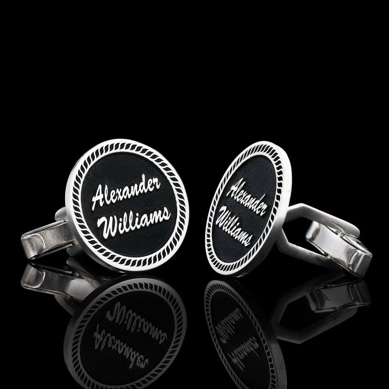 Special Design Handmade Silver Edged With Motifs Round Cufflinks