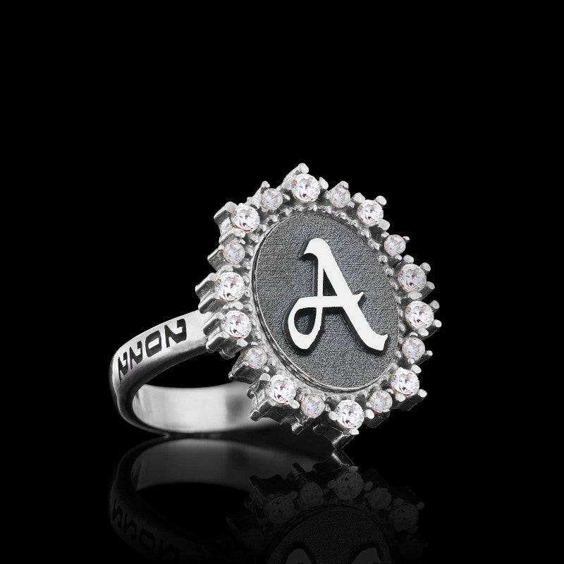 Special Design Handmade Stone Oval 925 Sterling Silver Monogram Letter A Women Ring