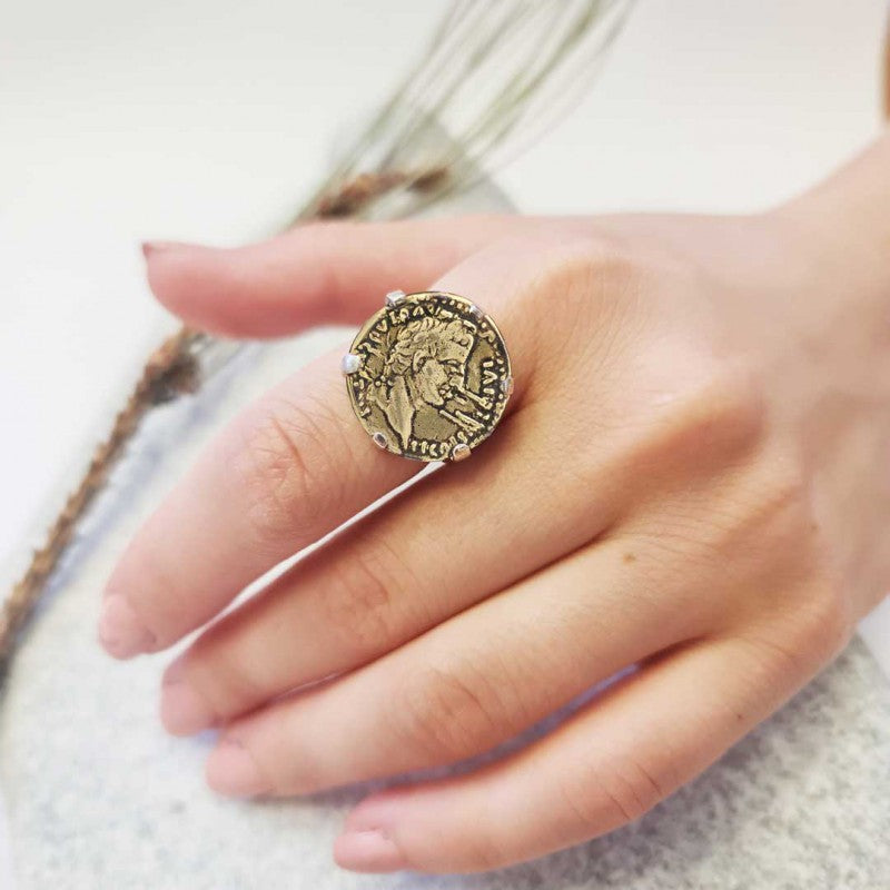 Special Design Sterling Silver Old Rome Coin Women Ring
