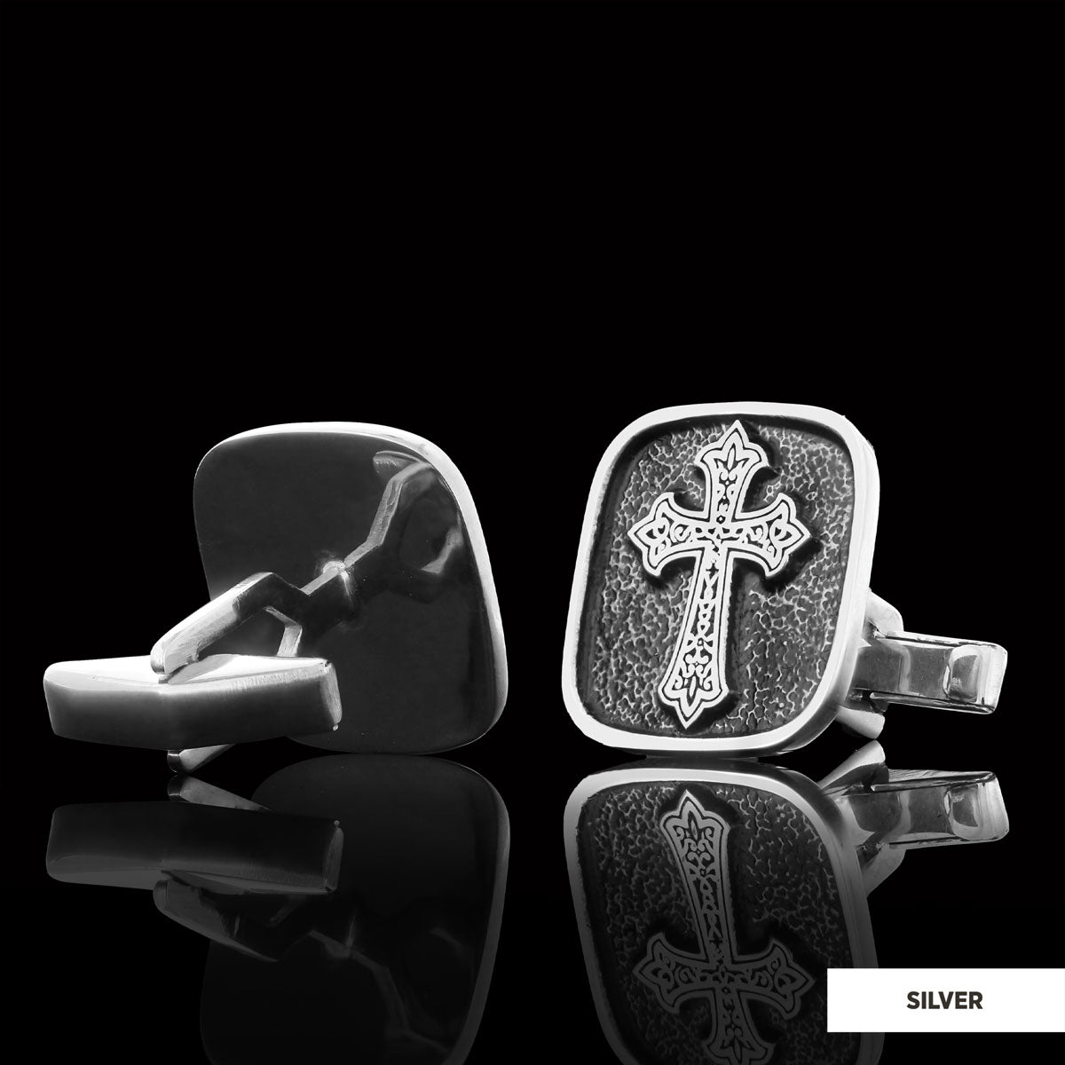 Specially Designed Silver Cross Cufflinks, Gold Plated Motif Cross Cufflinks, Square Cross Special Cufflinks