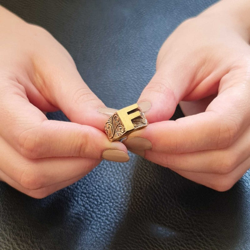 Sterling Silver Monogram F Bold Alphabet Women Ring