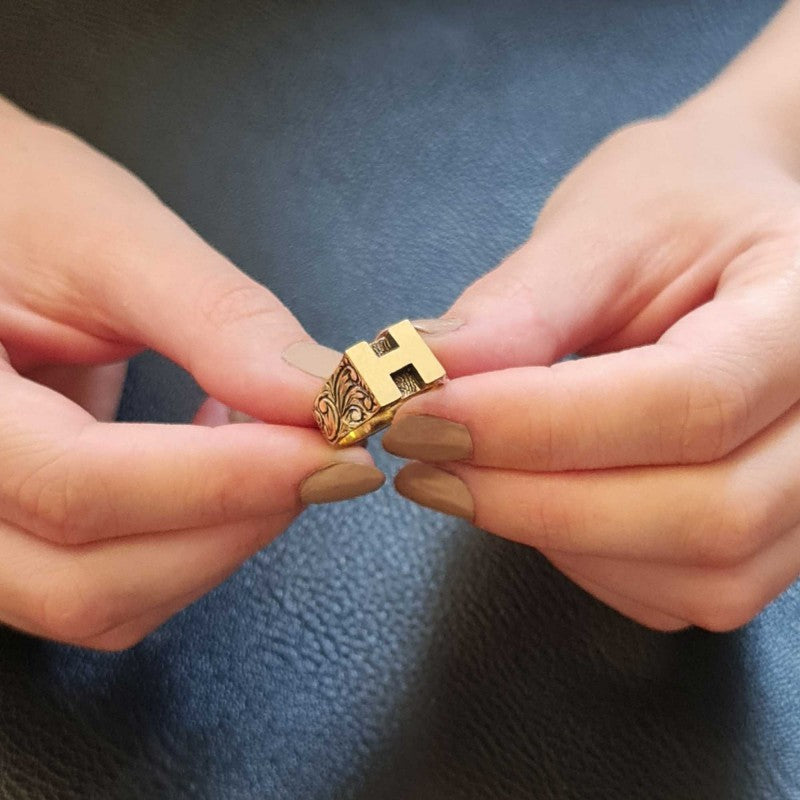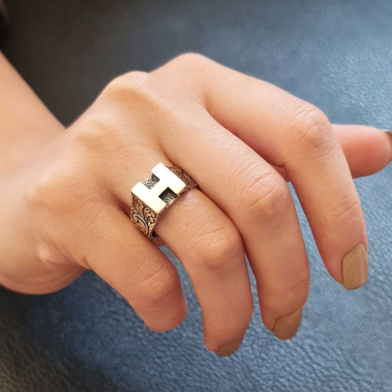 Sterling Silver Monogram H Bold Alphabet Women Ring