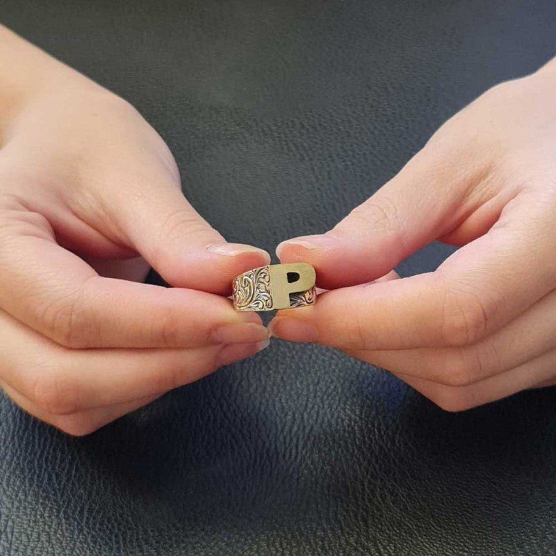 Sterling Silver Monogram P Bold Alphabet Women Ring